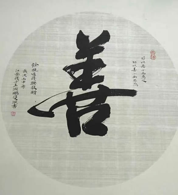 江南殘子王淵鵬。1965年生于杭州古運河畔一個世代文盲的農家。從小因病全身四肢嚴重癱瘓。沒有上過學,靠一本新華字典起步,一直自學到大學文化。還克服常人難以想象的困難,學會用雙腕寫字。愛好文學,書法和法律。 在艱難的環境下,30年如一日苦練書法,作品曾在全國上百次的各類大賽中獲獎或展覽。